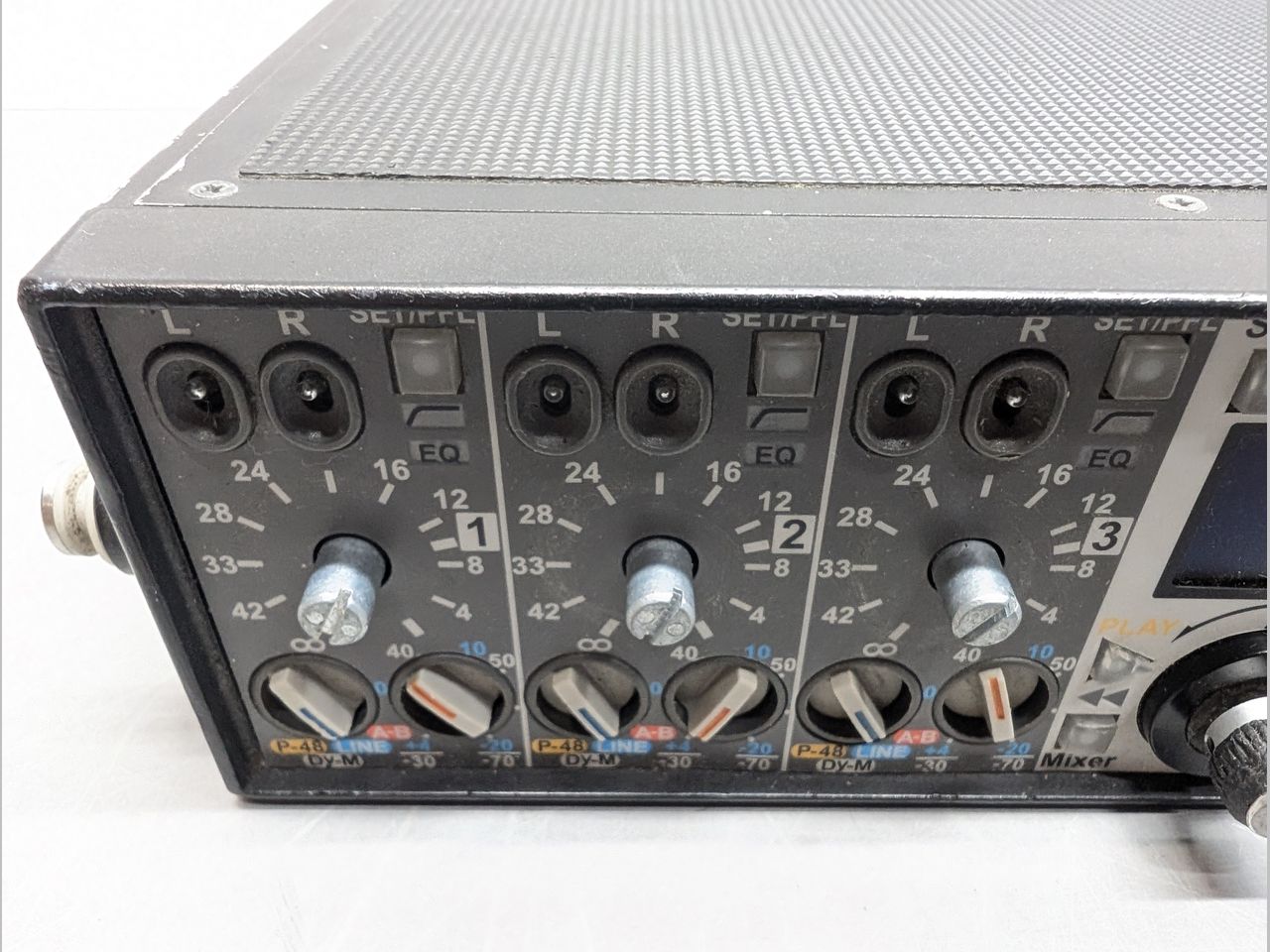 ・各チャンネルのレベル調整ツマミも欠損しています。軸を持って操作することは可能です。